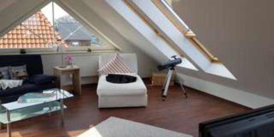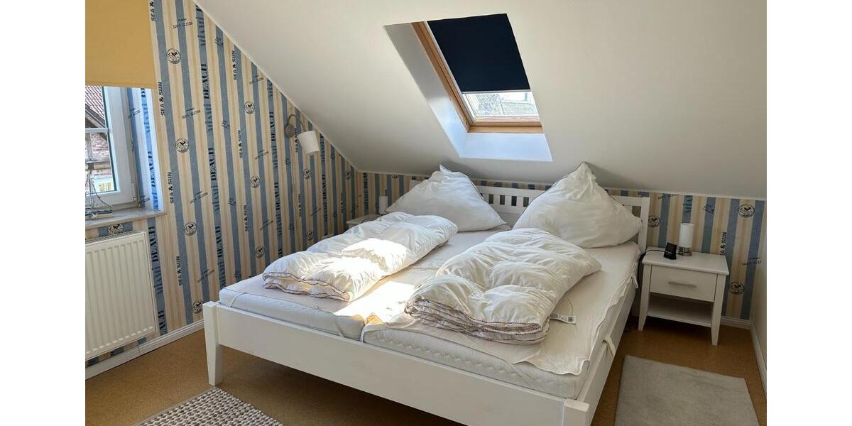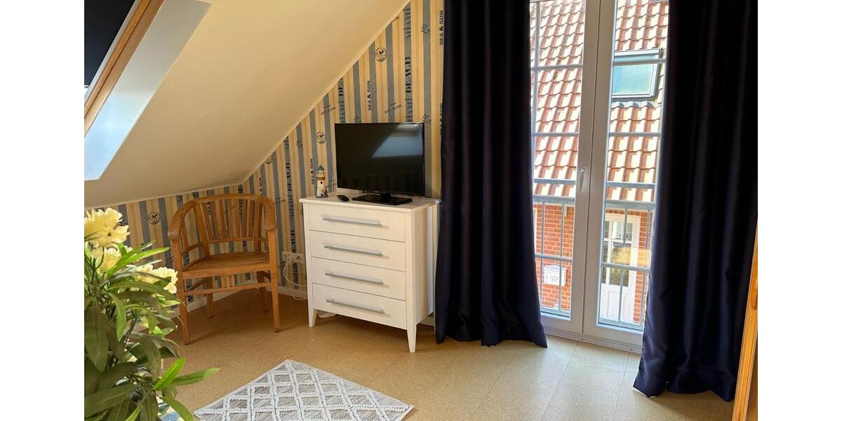 Der Spitzboden ist lichtdurchflutet und bietet Meerblick. Dieser Raum lädt in den Abendstunden zu absoluter Entspannung ein.