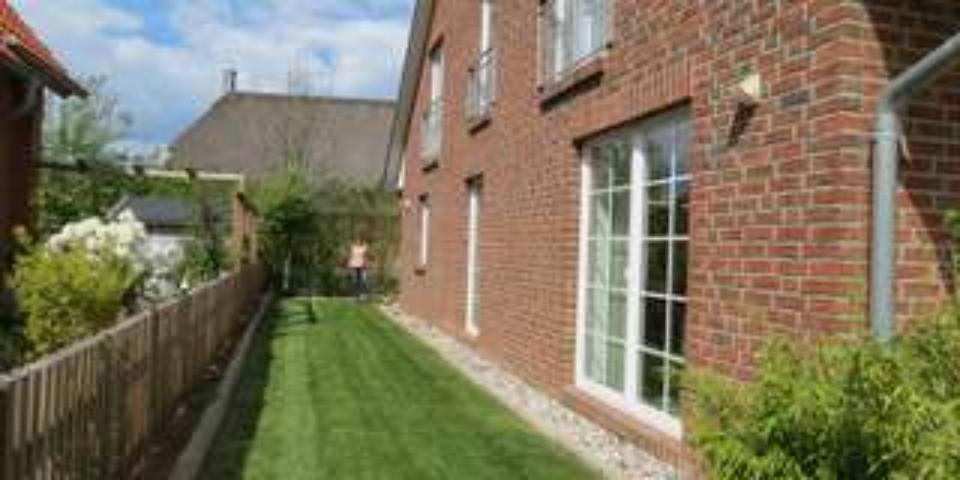 Das gepflegte Grundstück ist komplett eingezäunt. Vor dem Haus lädt eine nach Süden gelegene Terrasse zum Verweilen ein. Auf der davor gelegenen Wiese lassen sich Spiele spielen oder ein Sonnenbad nehmen. Hinter dem Haus biete eine besonders abgeschiedene kleine Veranda die Möglichkeit zum Sitzen.